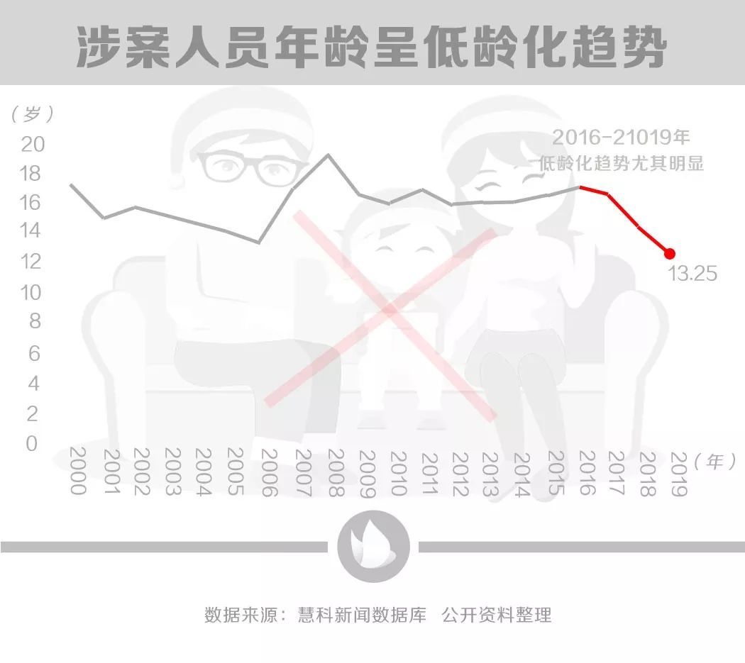 据统计,最近20年内,青少年弑父弑母案中犯罪者平均年龄从17岁下降到13岁左右,尤其在近三年来,年龄下降趋势尤其明显。2018年湖南省沅少年江弑母案件中,犯罪者年龄已低至12岁,甚至有专家建议修改刑事责任年龄“从14周岁降低至12周岁”。