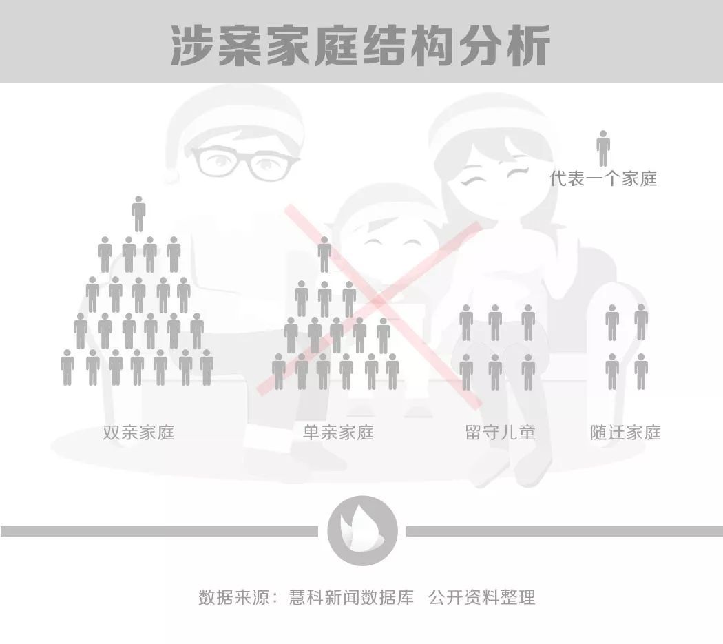 这些弑父弑母案件中,农村的比例占据80%,城市20%。其中,有与父母分离,留守经历的有24人,占比达52.17%。